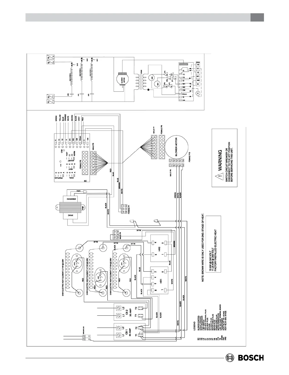 Bosch DX025 - Electrical Diagrams: 15 kW Heater Package; 15 kW Electric Heater Package Wiring Diagram