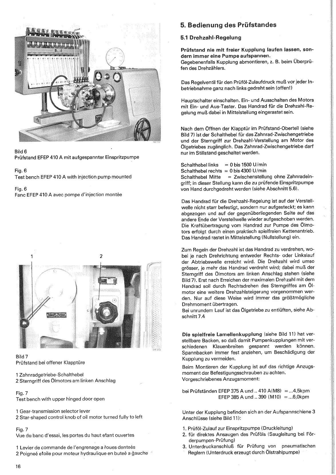 griff; in dieser Stellung kann die zu prüfende Einspritzpumpe