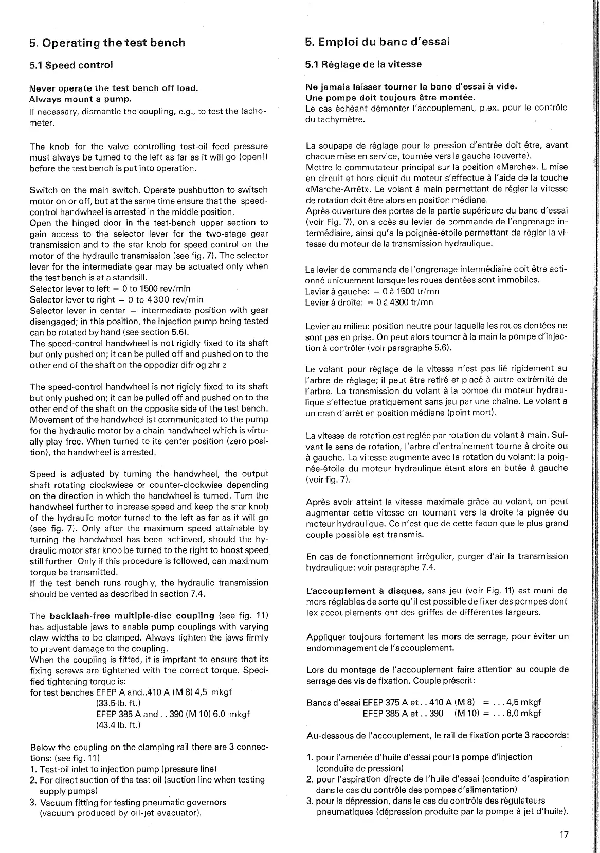 Bancs d'essai EFEP 375 A et