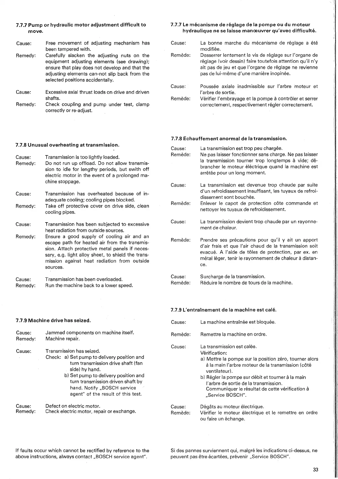 7.7.7 Pump or hydraulic motor adjustment difficult to