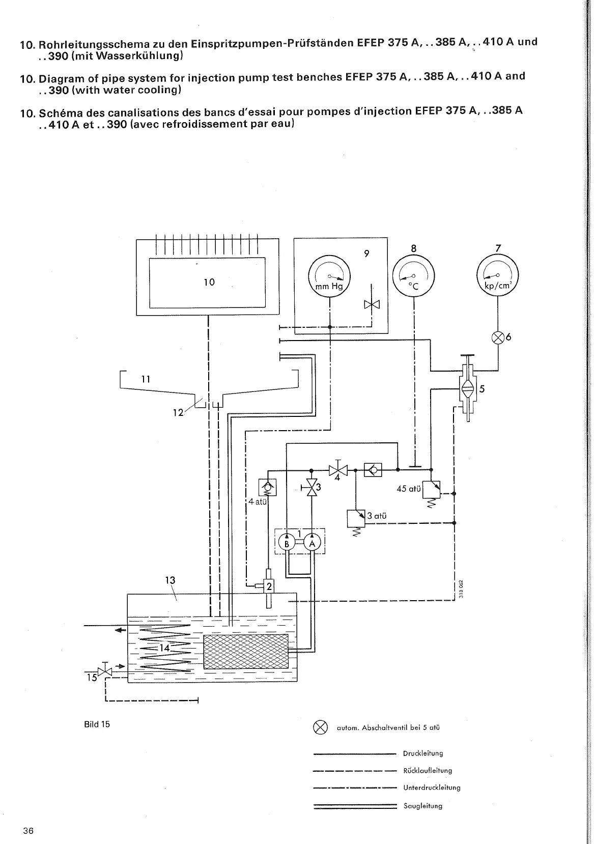 10. Rohrleitungsschema zu den Einspritzpumpen-Prüfständen EFEP 375