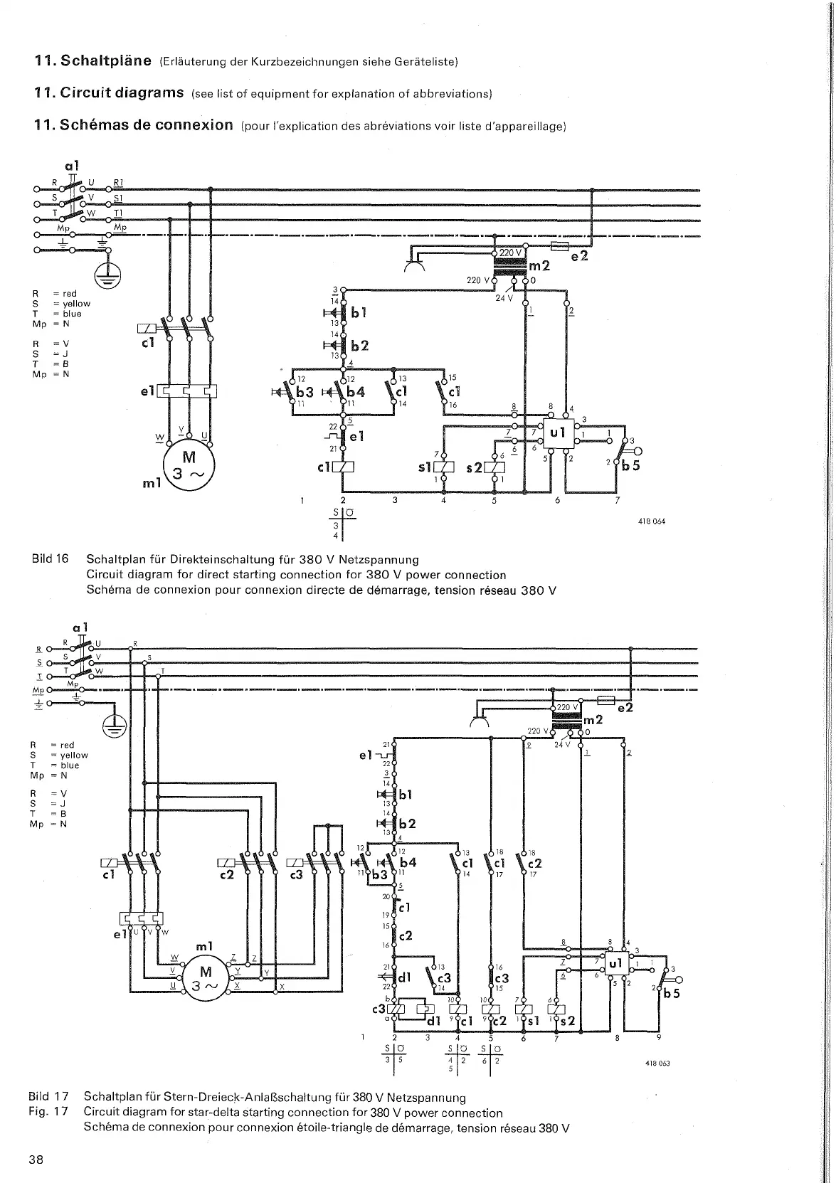 Circuit diagram for star-delta starting connection for