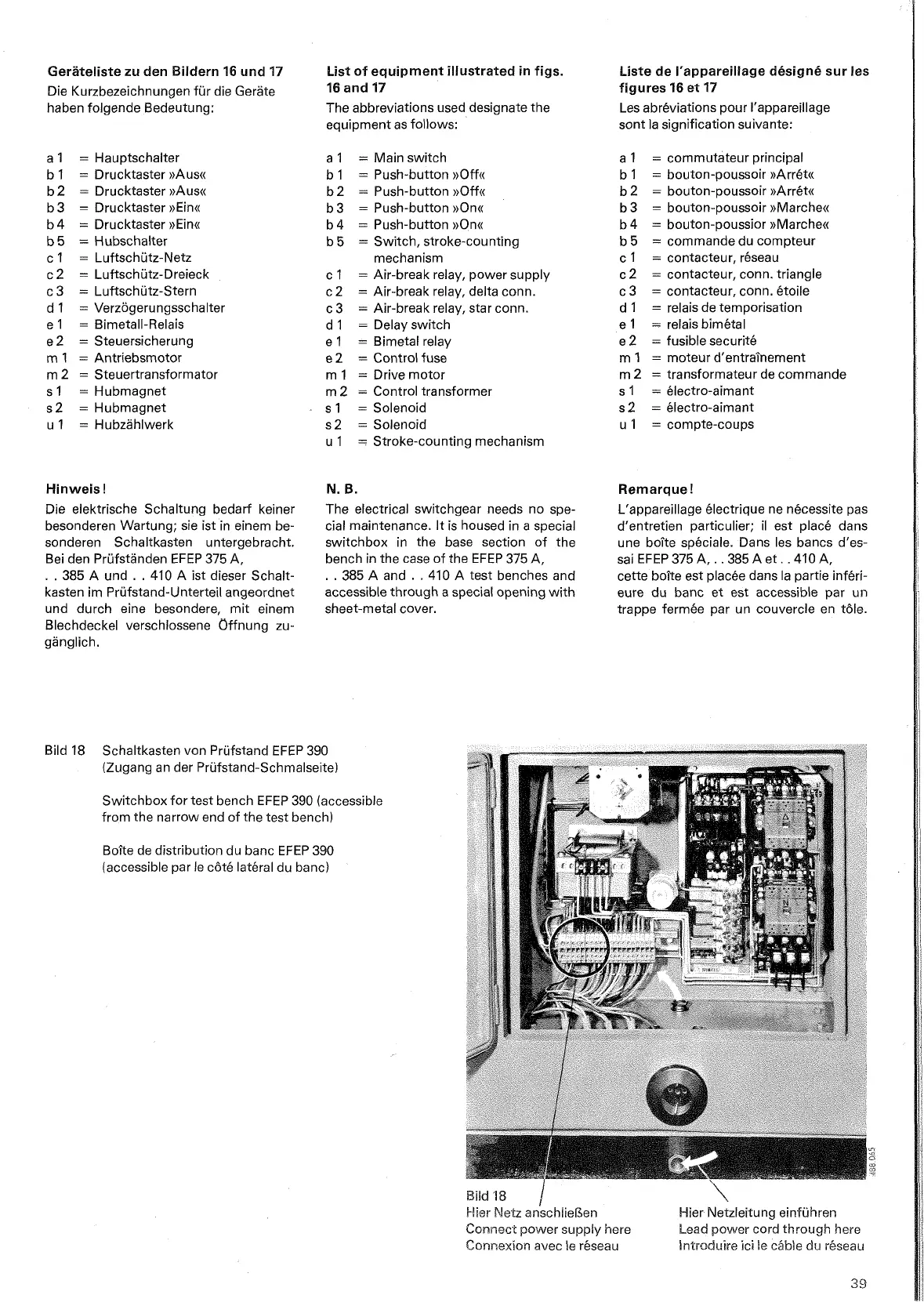 List of equipment illustrated in figs.