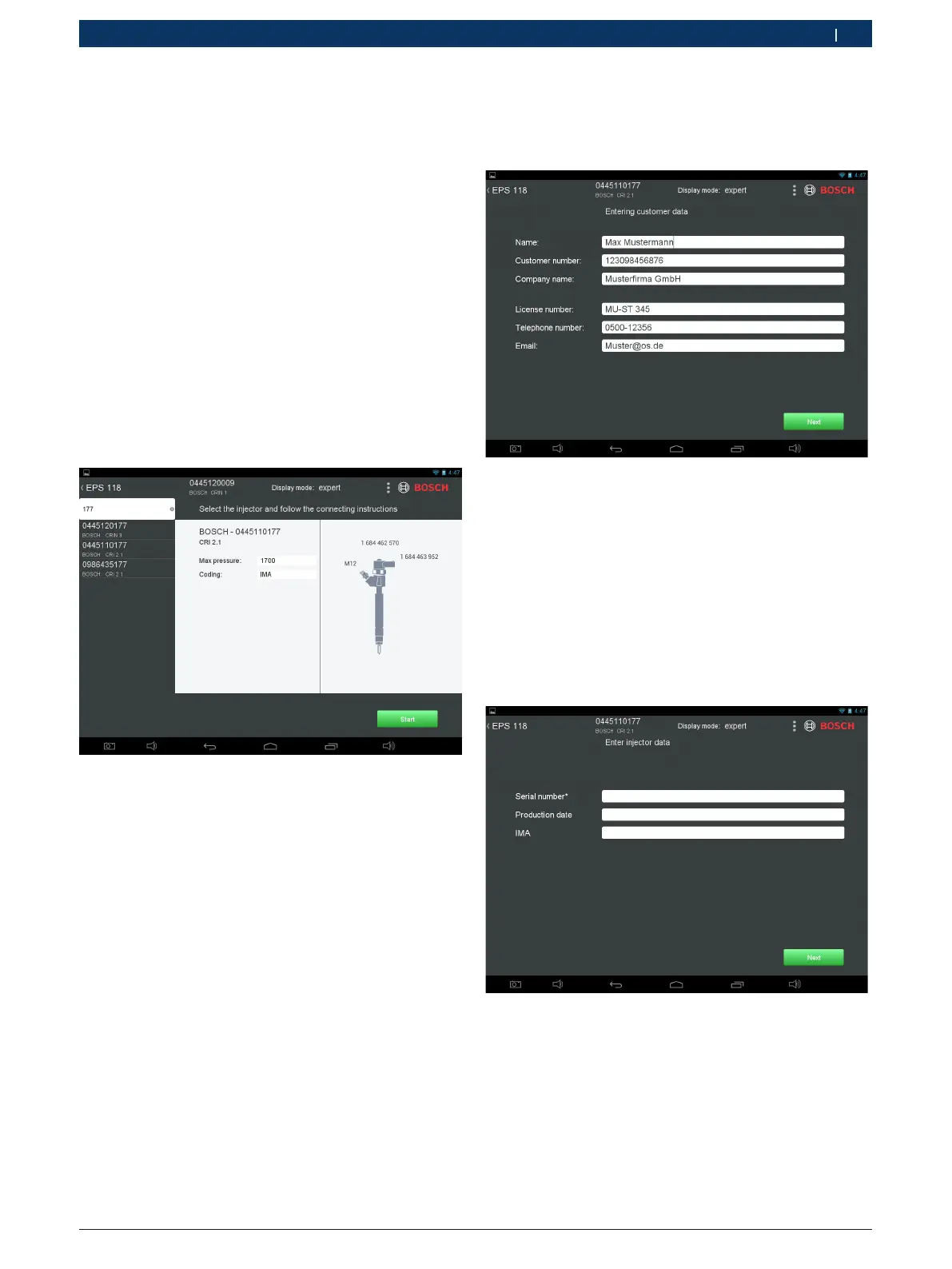 Fig. 41: Inserire i dati dell'iniettore