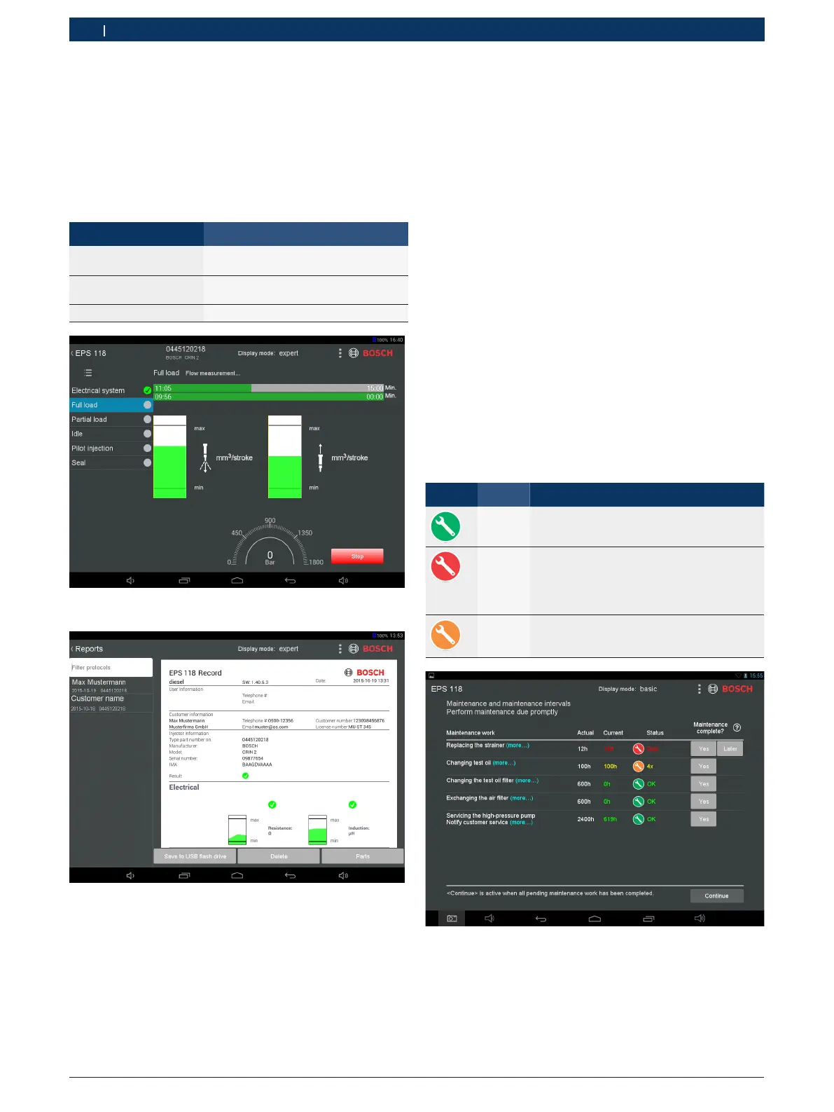 hold venter på EPS 118, vises vedlikeholdsskjermen