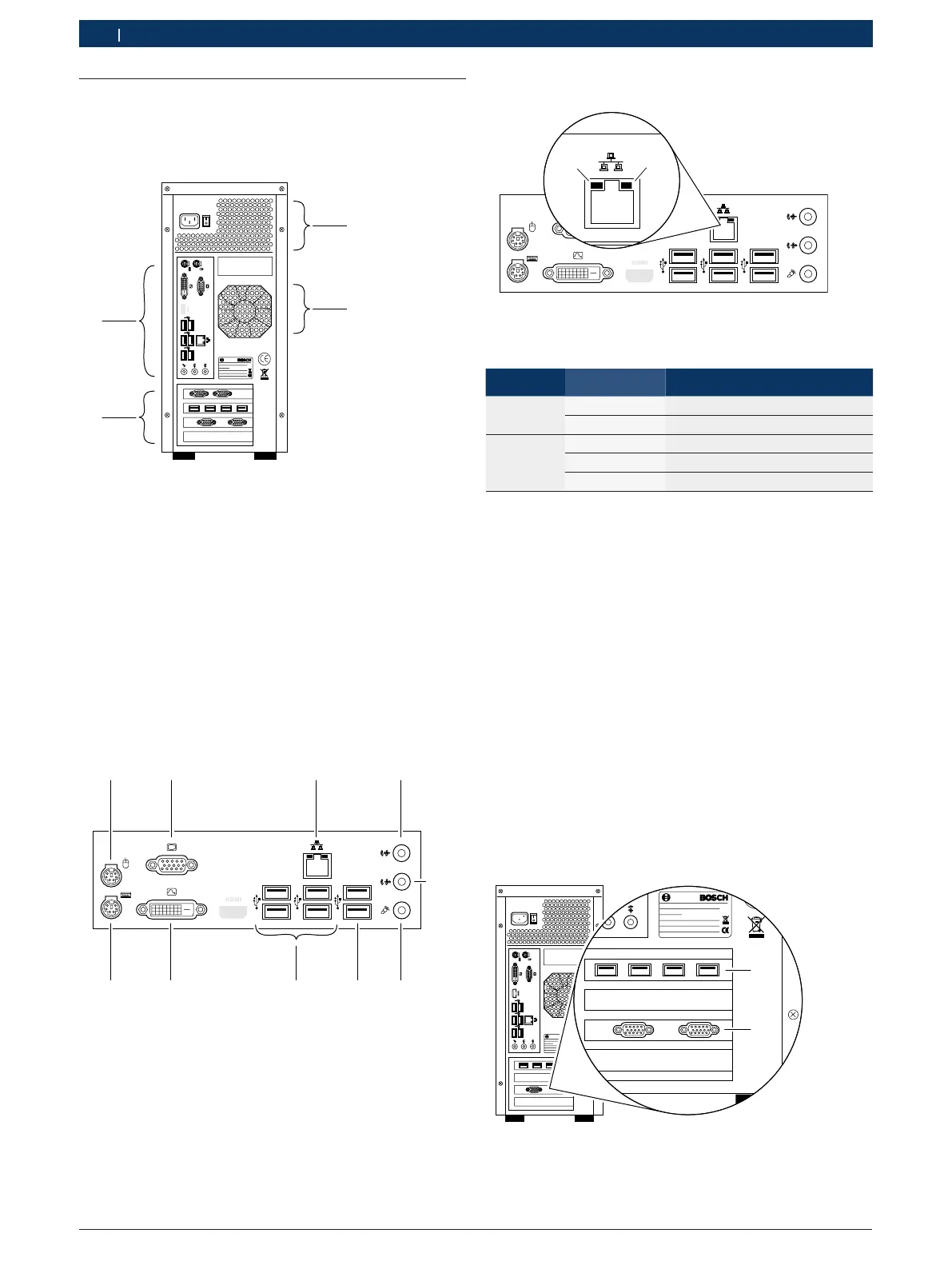 De achterzijde van de PC is in vier gedeeltes ingedeeld.