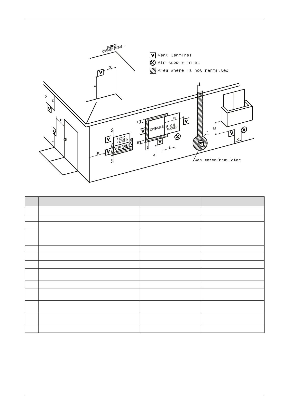 J Clearance to non-mechanical air supply inlet to building or the