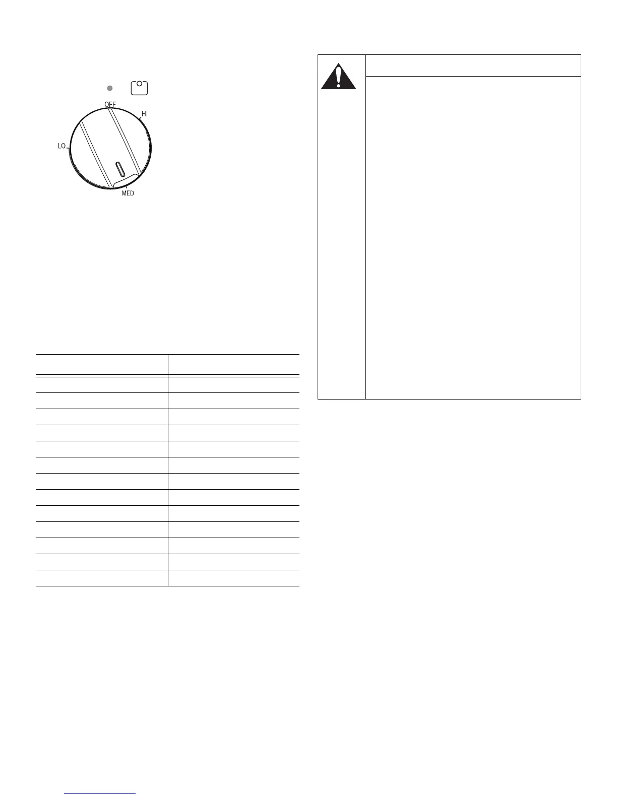 Temperature selection - Refer to the Keep Warm Zone