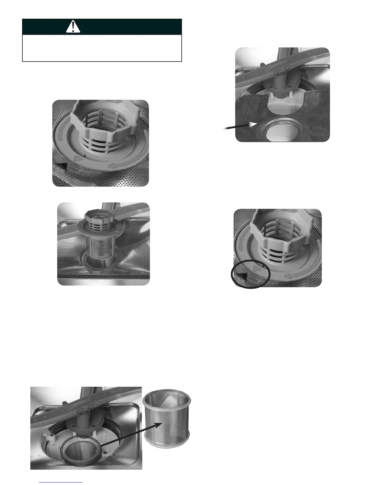 1. Lift the ne lter from the dishwasher oor as shown below