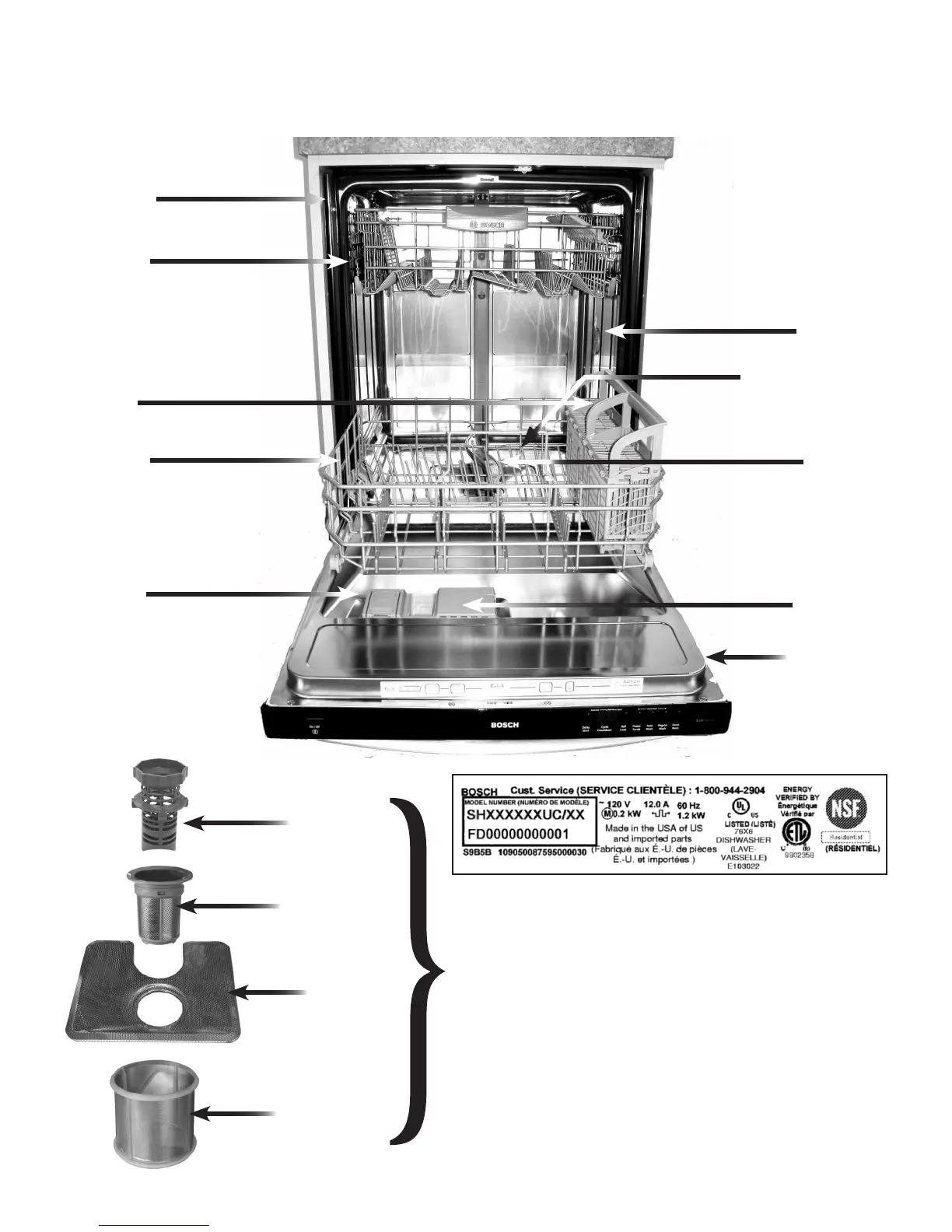 Bosch Evolution SHE43P22UC - Componentes de la Lavadora de Platos