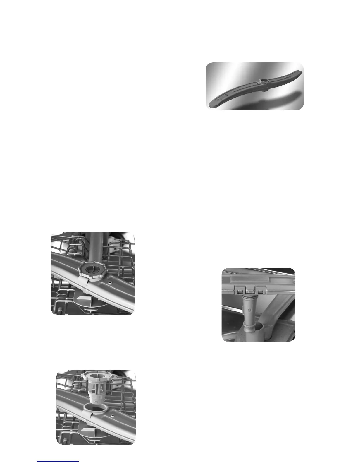 1. Vuelva a colocar el brazo rociador inferior en el lugar de