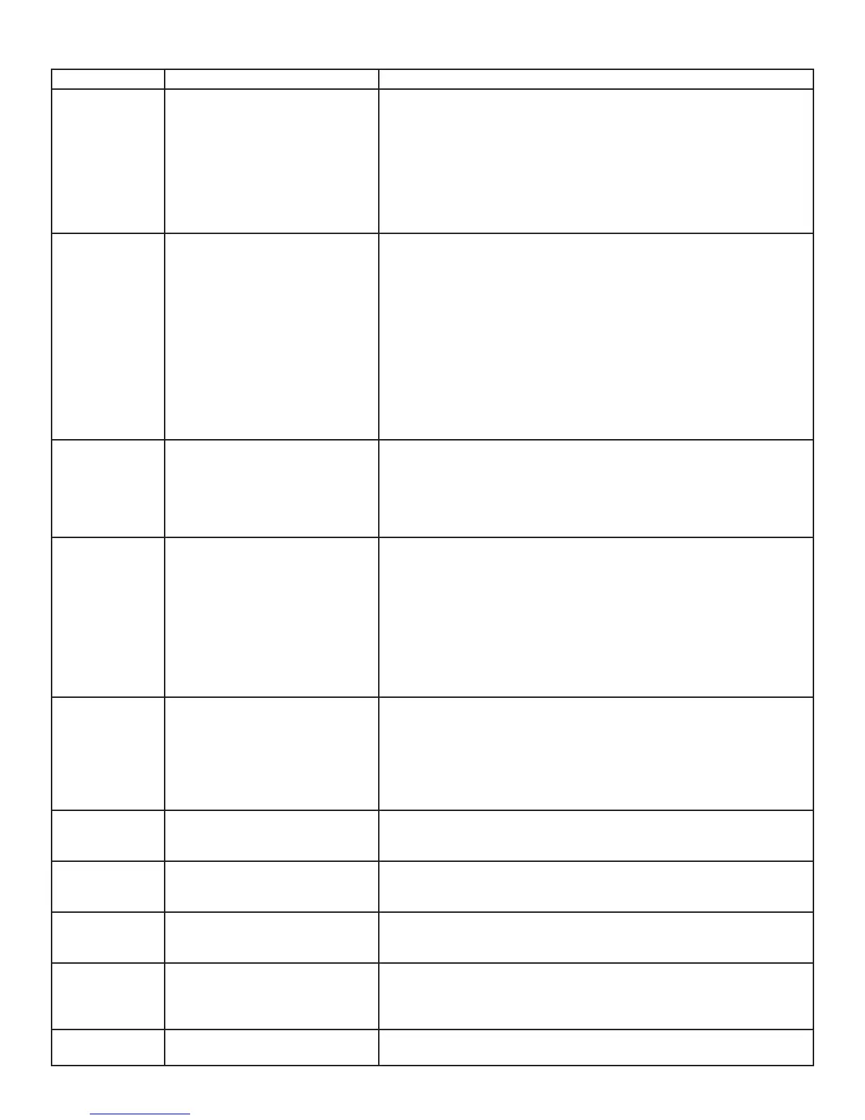 las siguientes tablas no estén cubiertos por la garantía de su producto.