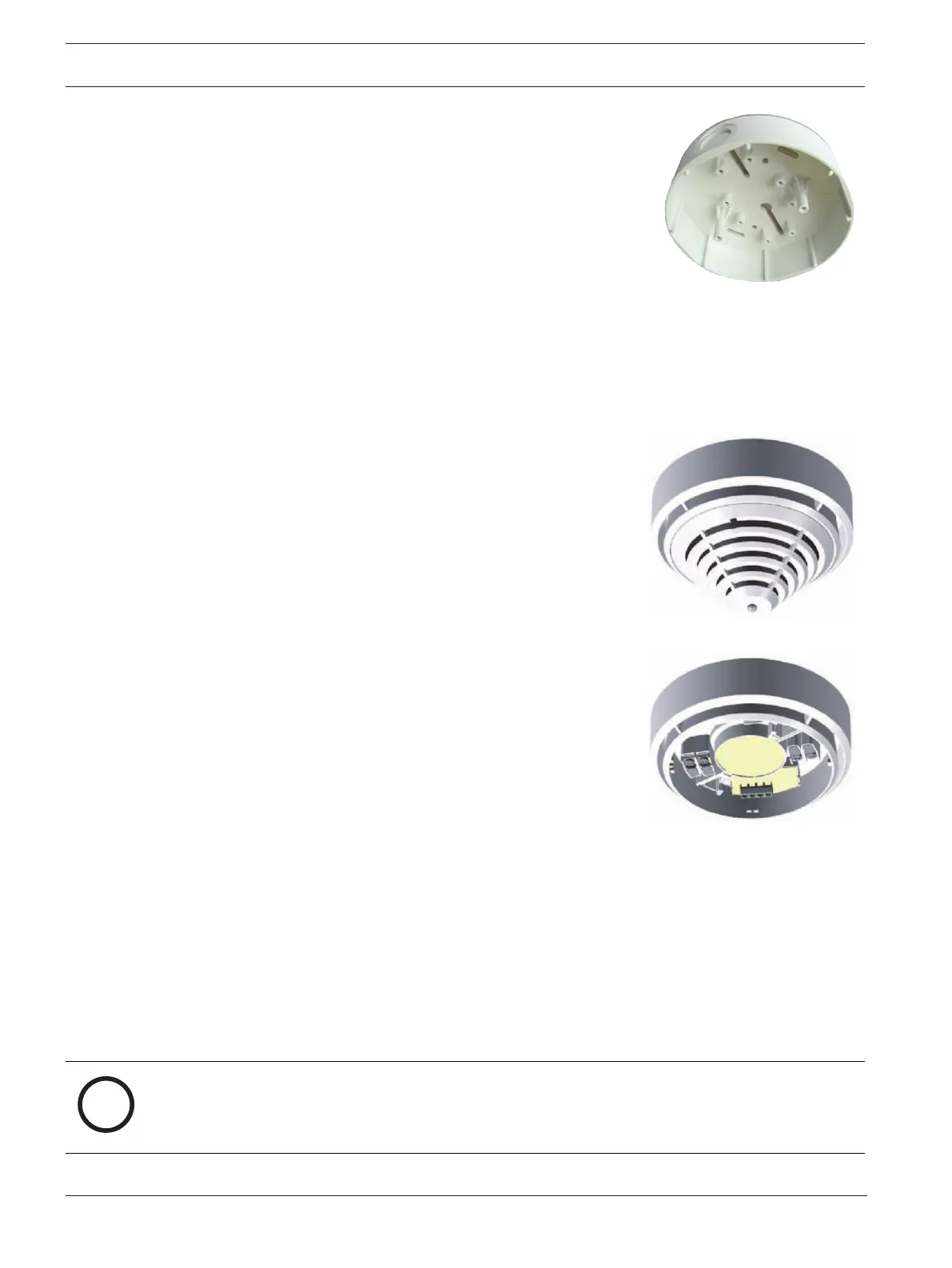 The detector bases are screwed to the even, dry surface using two screws approx. 55mm