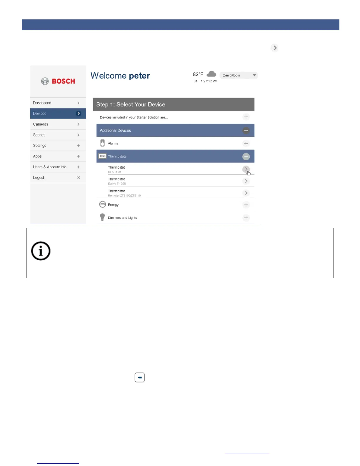 5. Select the device type and model number that you want to install and click the symbol next to it.