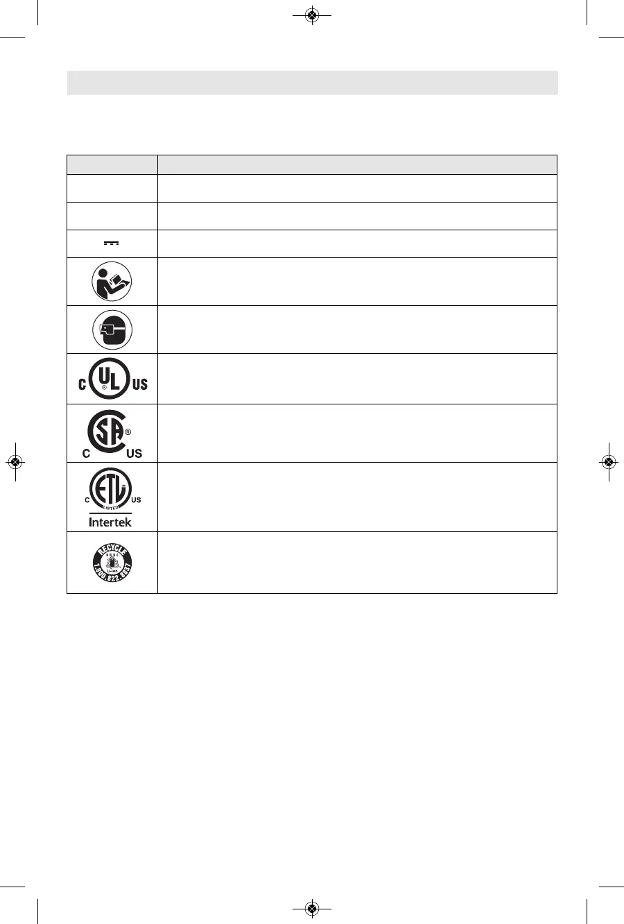 This symbol designates that this tool is listed by the Intertek Testing