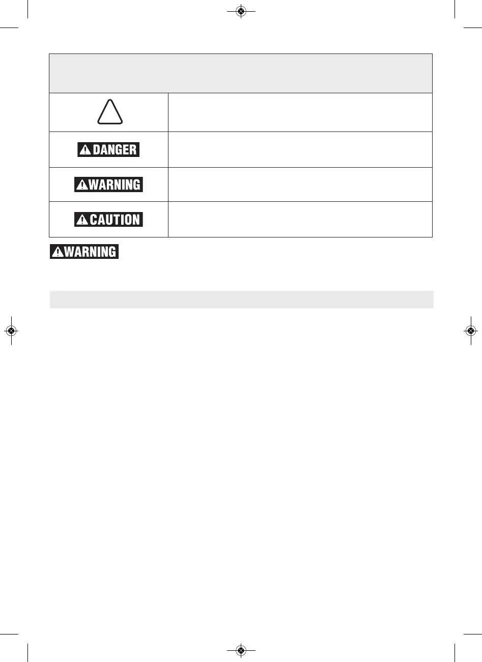 The definitions below describe the level of severity for each signal word. Please read the manual