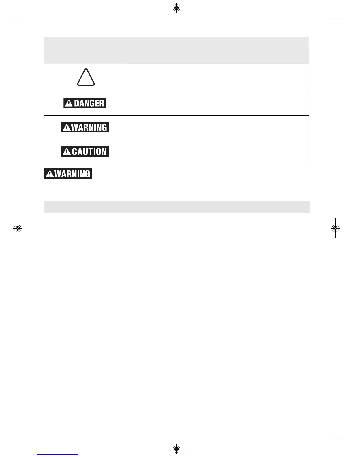 The definitions below describe the level of severity for each signal word. Please read the manual