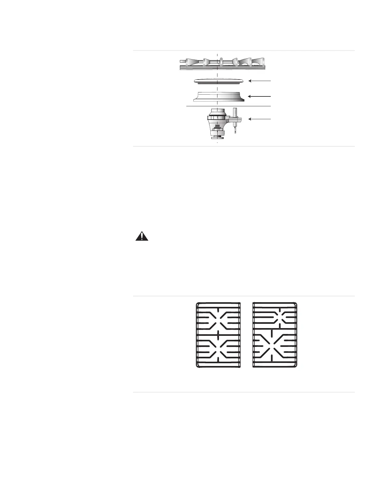 Burner Grates Warning: To prevent flare-ups, do not use the cooktop without all burner