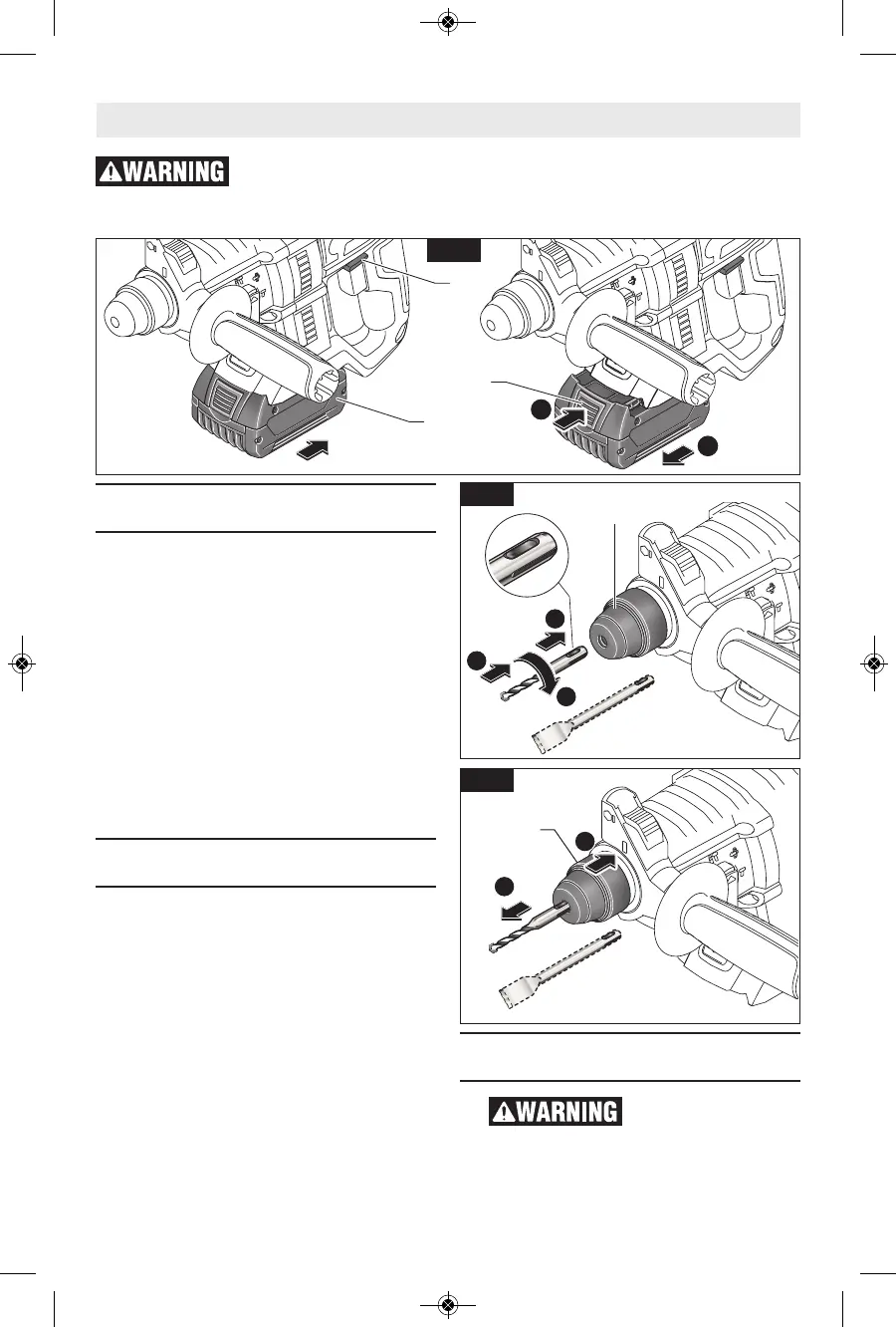 battery pack locks into position (Fig. 2).
