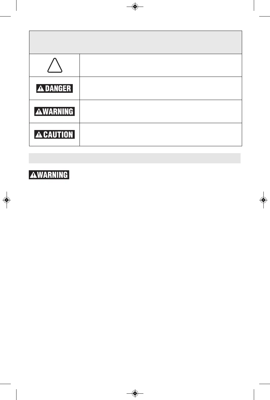 The definitions below describe the level of severity for each signal word. Please read the manual