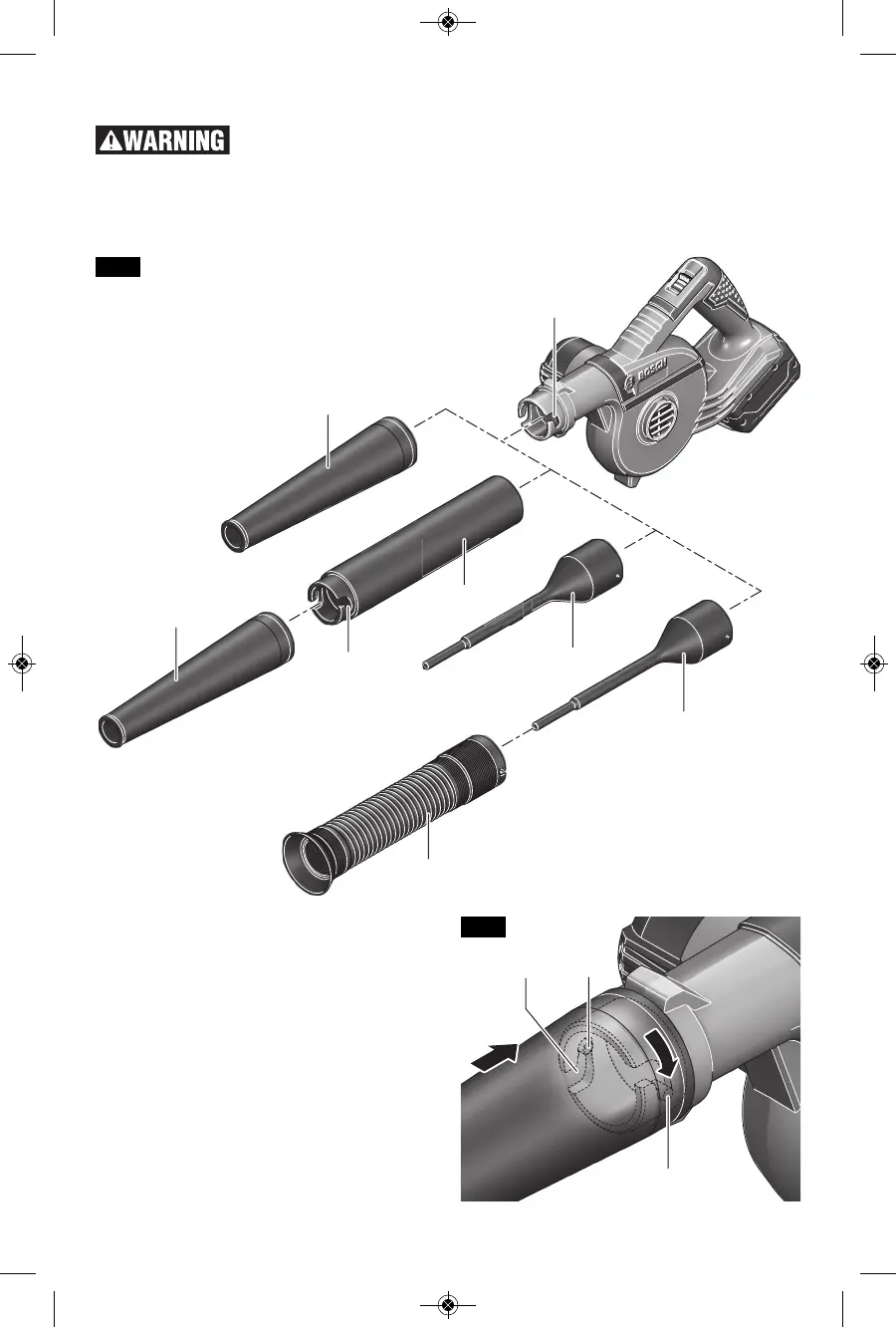 See the Fig. 3 for the ways of combining the different blower attachments.