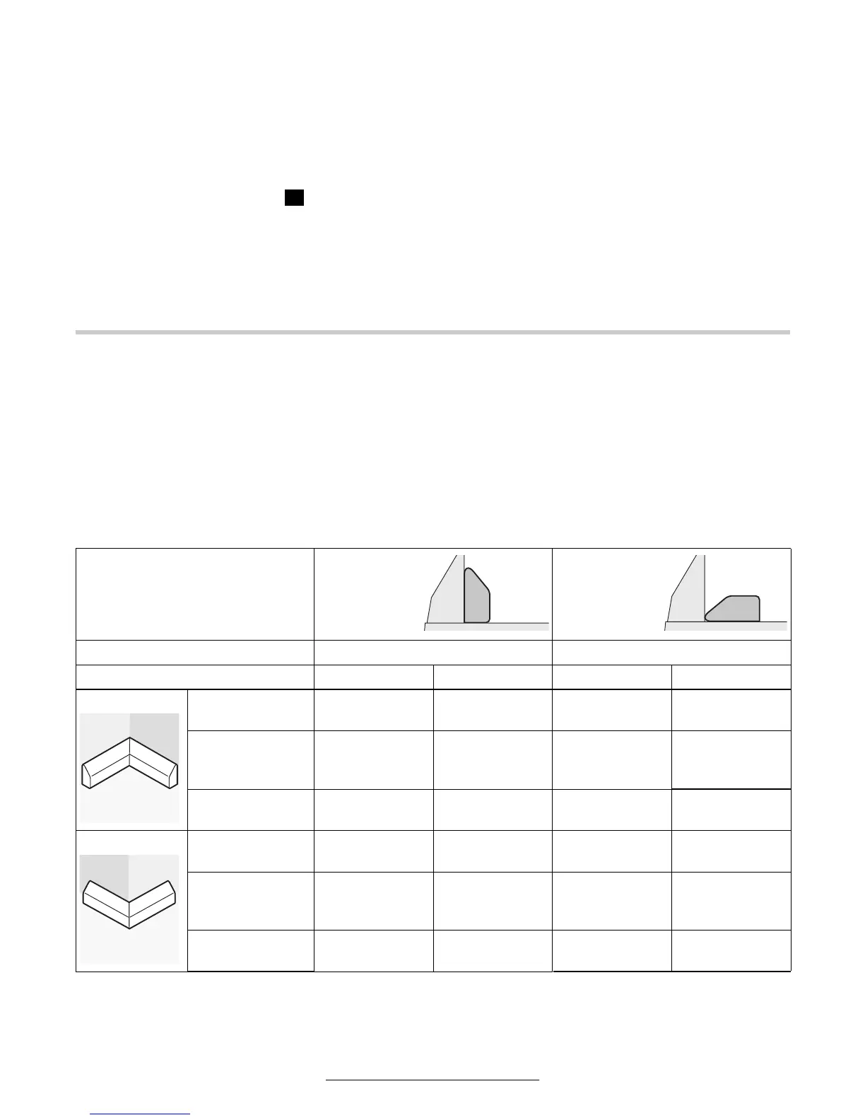 Nella seguente tabella si trovano indicazioni relative alla lavorazione di bordi da pavimento.