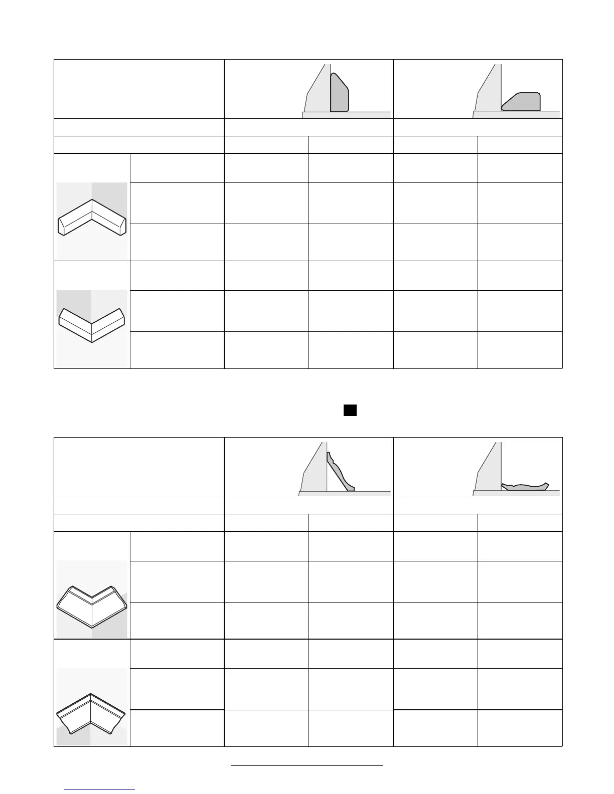 La siguiente tabla le informa como aserrar molduras para techos.
