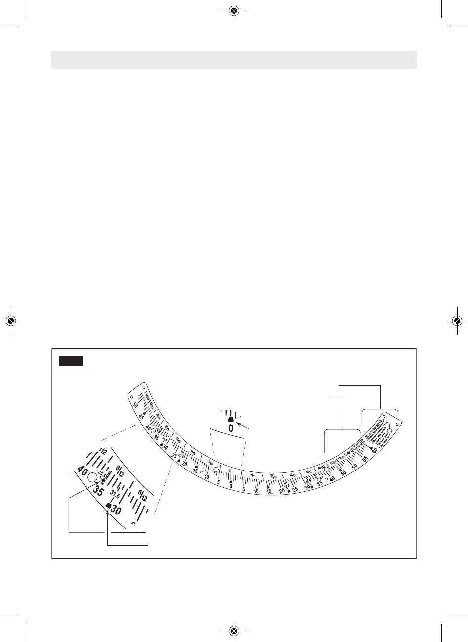 L’échelle d’onglet utilisée sur cette scie inclut plusieurs échelles
