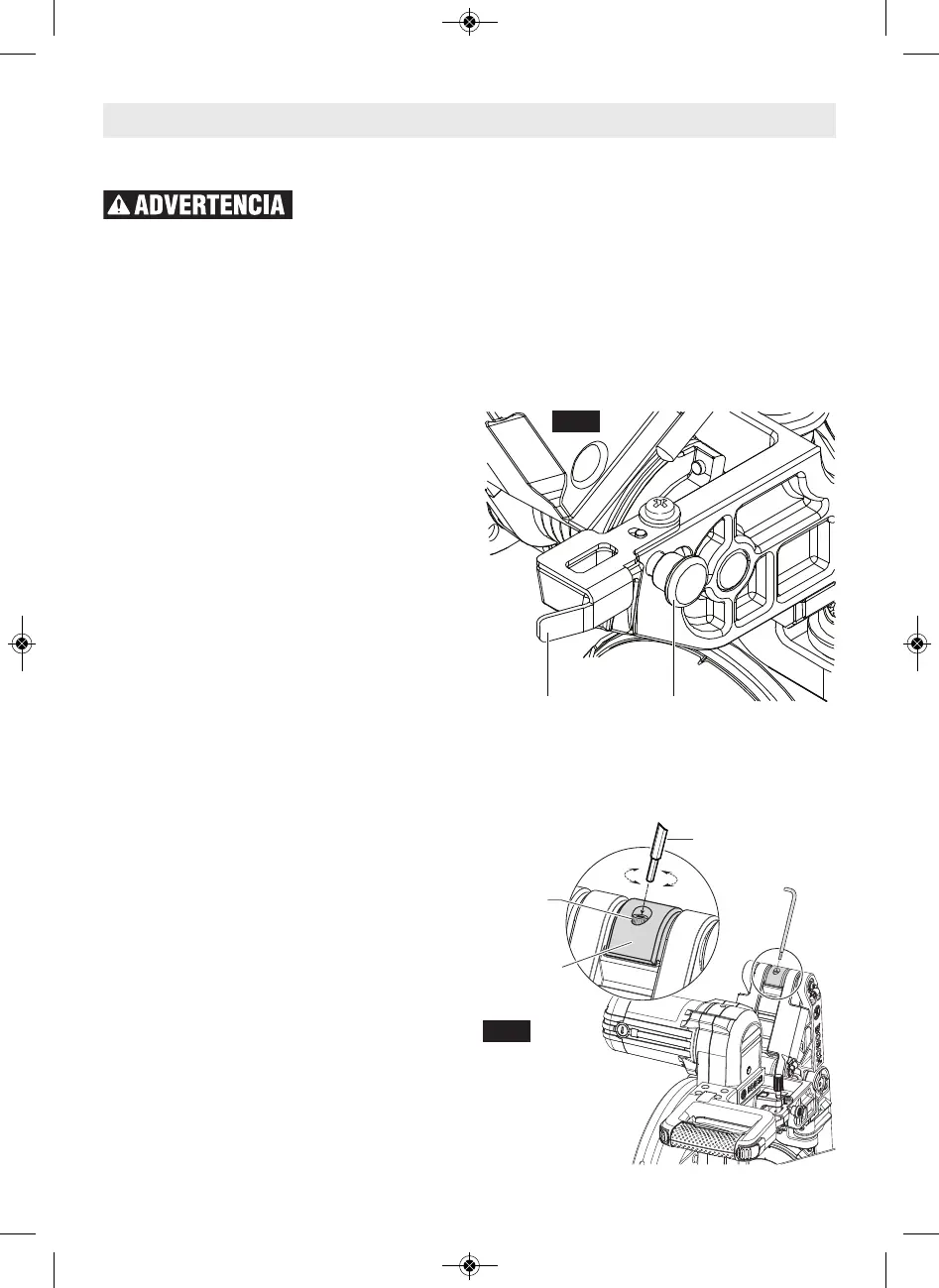 3. Mientras presiona hacia abajo el cabezal de la sierra, em-