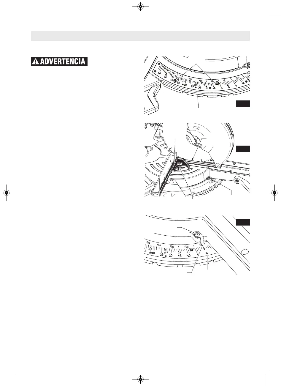 ción correcta el indicador de la escala de ingletes (vea la