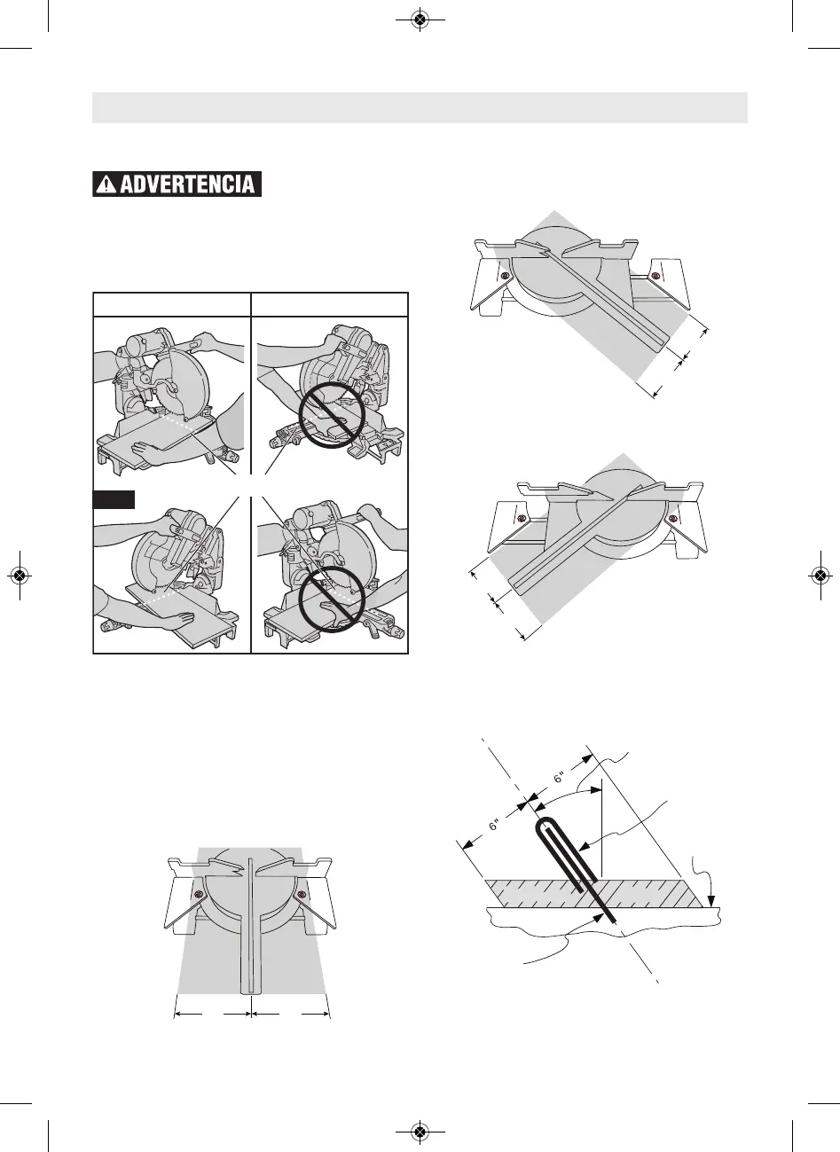 La “Zona de manos no” para todos los cortes deslizantes y a in-