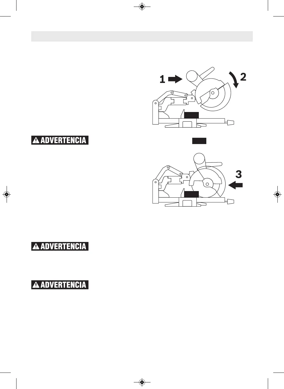 4. Sujete hacia abajo el cabezal de la sierra hasta que la hoja