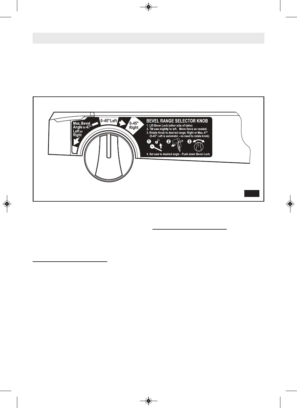 Pomo selector del intervalo de bisel – Esta sierra tiene un control delantero en el lado derecho del brazo de la mesa. Esto