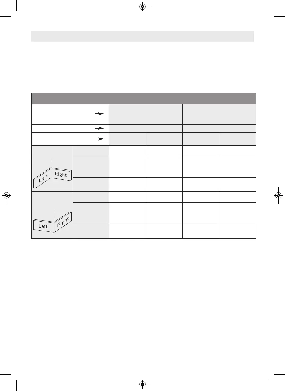• Follow the table for helpful hints on cutting base molding for corners that have 90° angles.