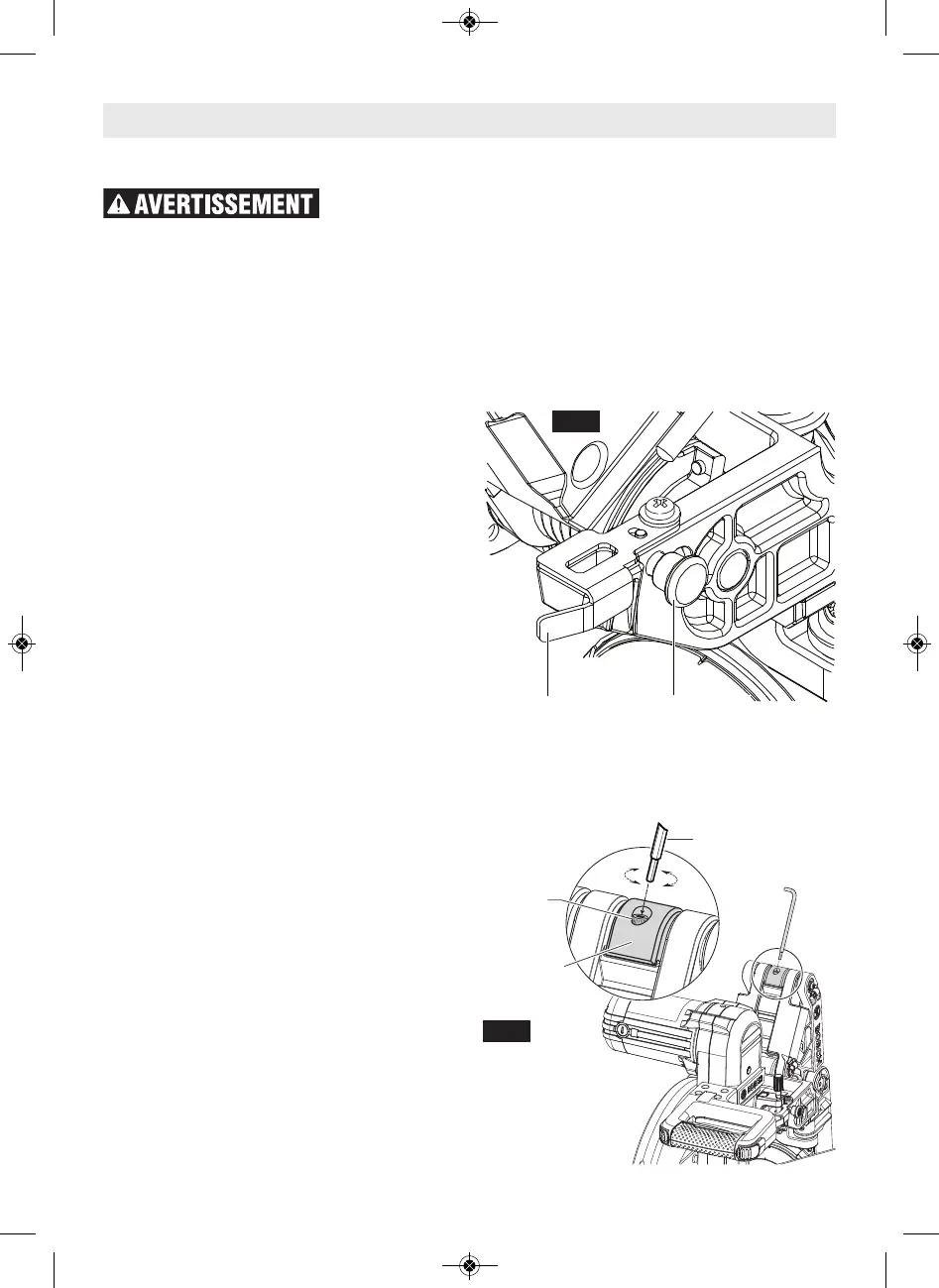 3. Tout en appuyant sur la tête de la scie et en la maintenant