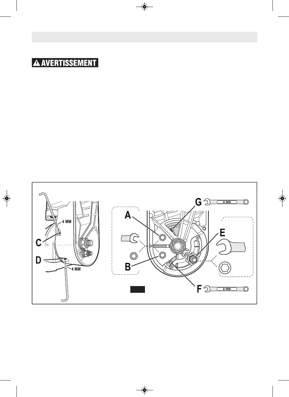 3. Desserrez la vis de réglage « D » en utilisant le bout de 4