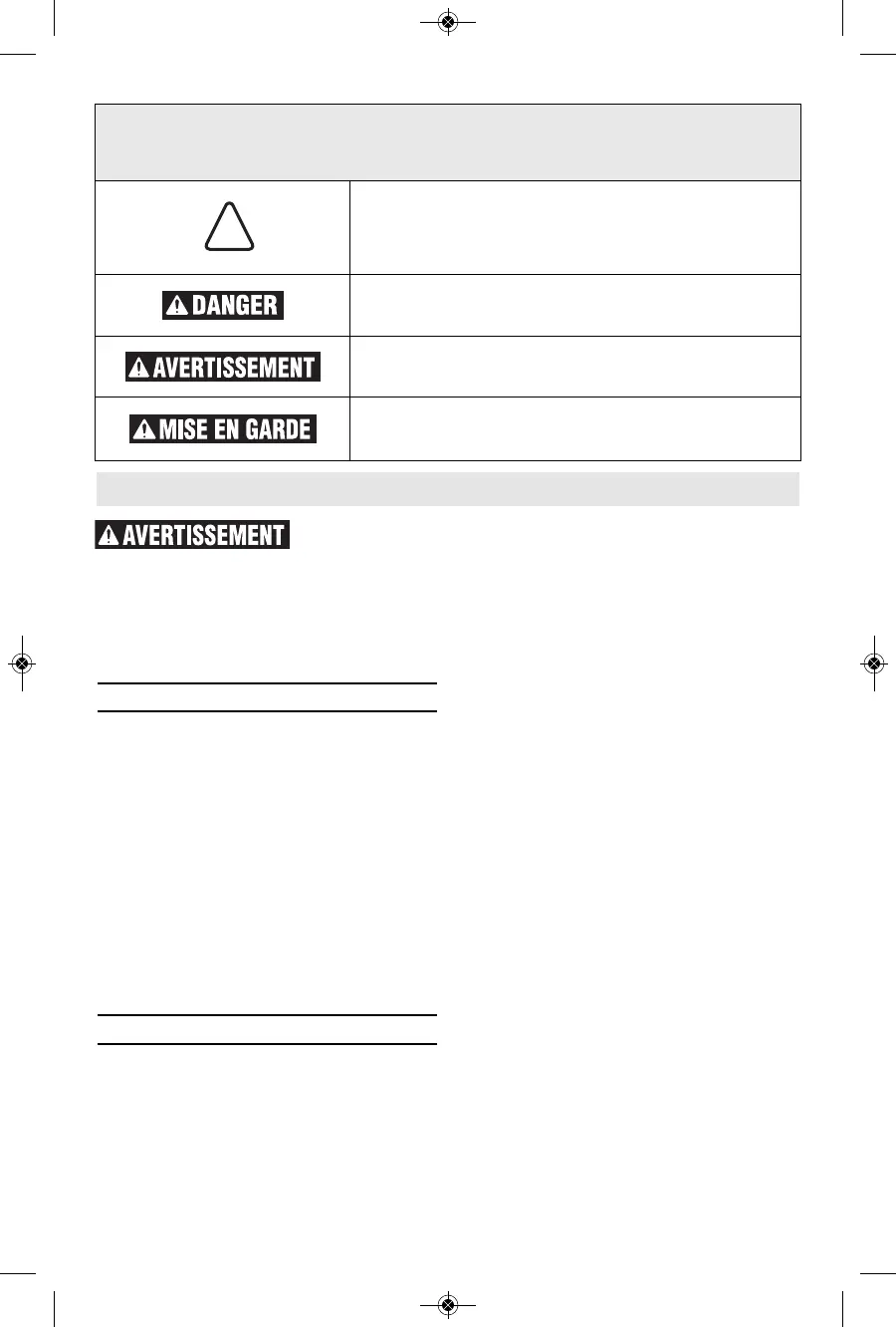 CONSERVEZ TOUS LES AVERTISSEMENTS ET TOUTES LES CONSIGNES