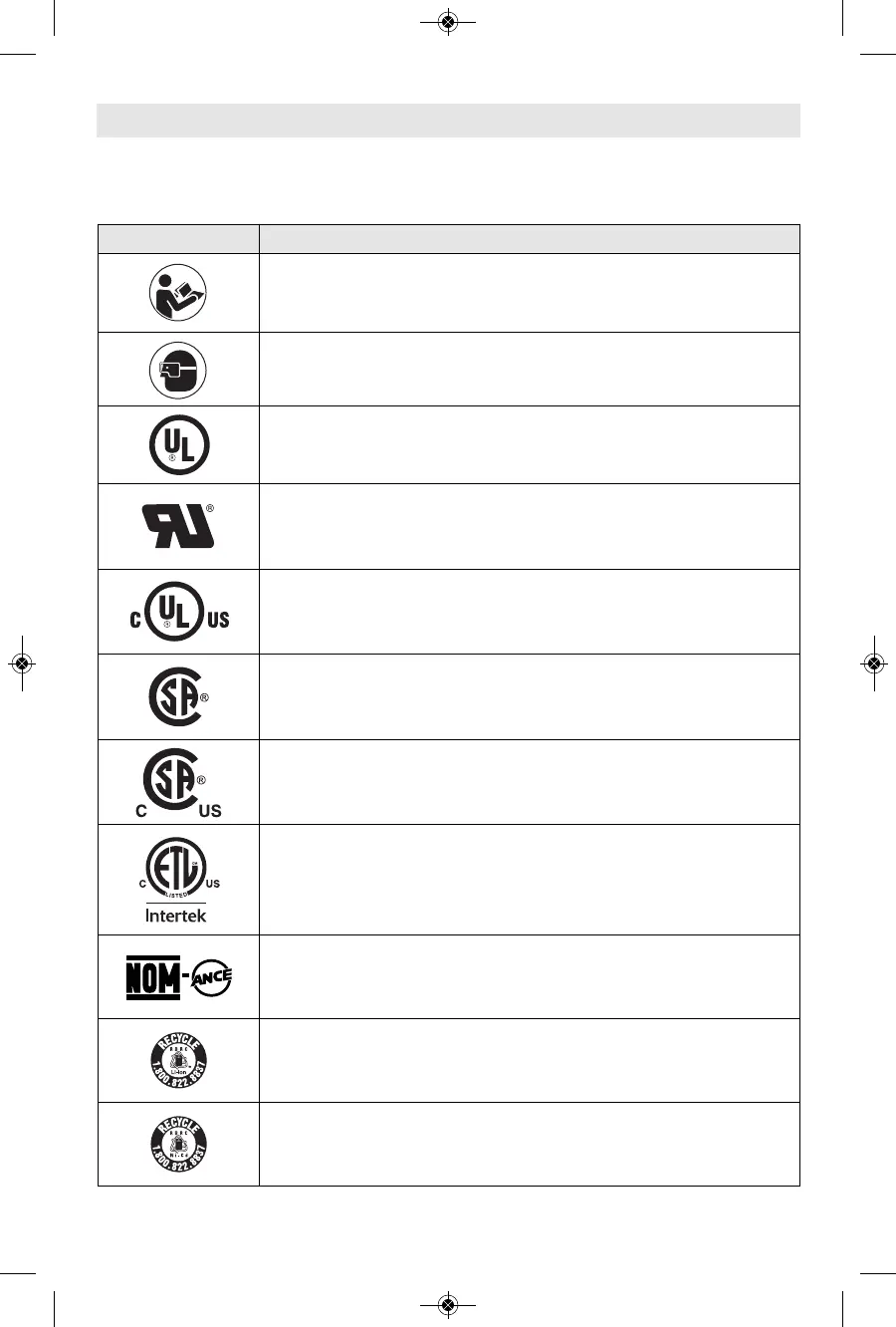 This symbol designates that this tool is listed by the Intertek Testing