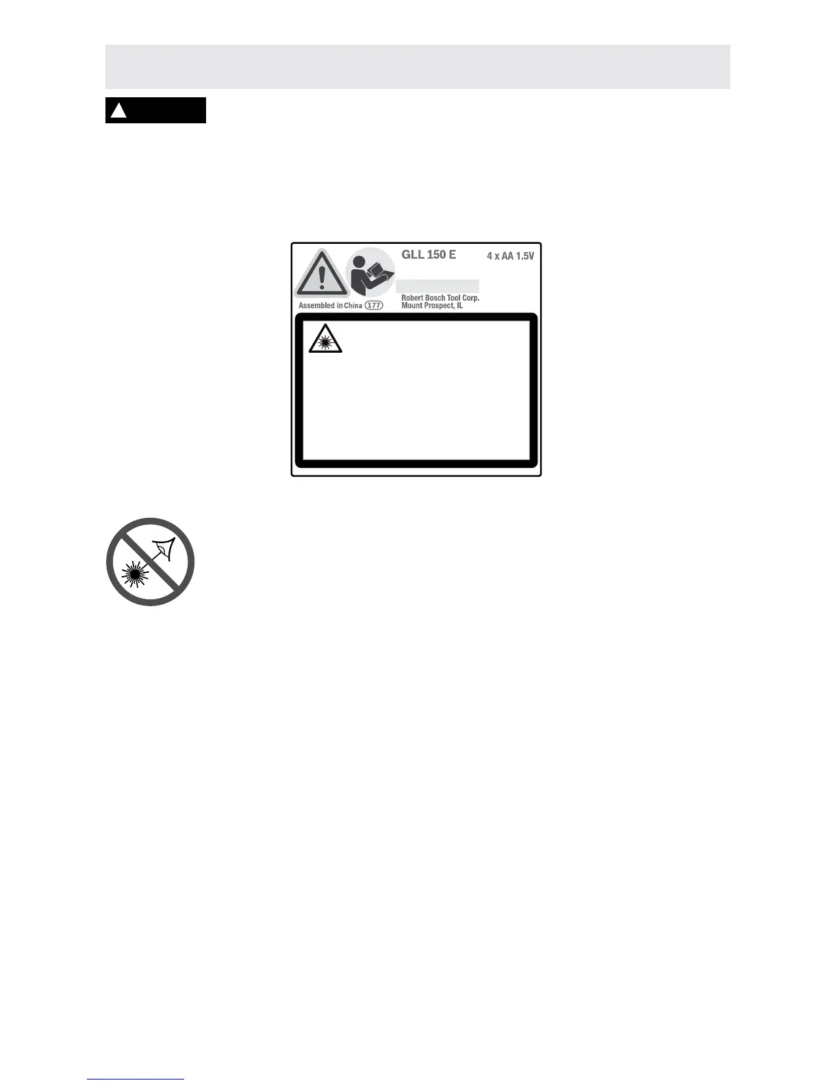 The following labels are on your laser tool for your convenience and safety. They indicate