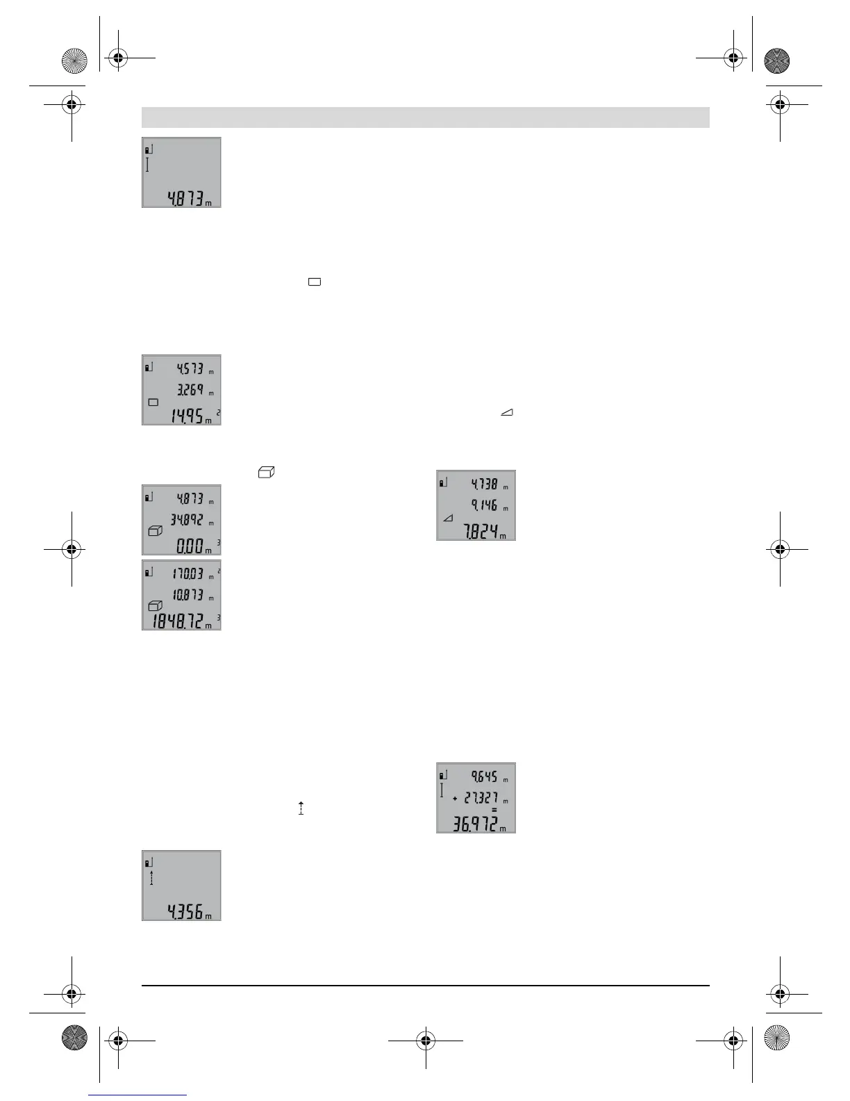 For area/surface measurements, press button 3 until the indi-