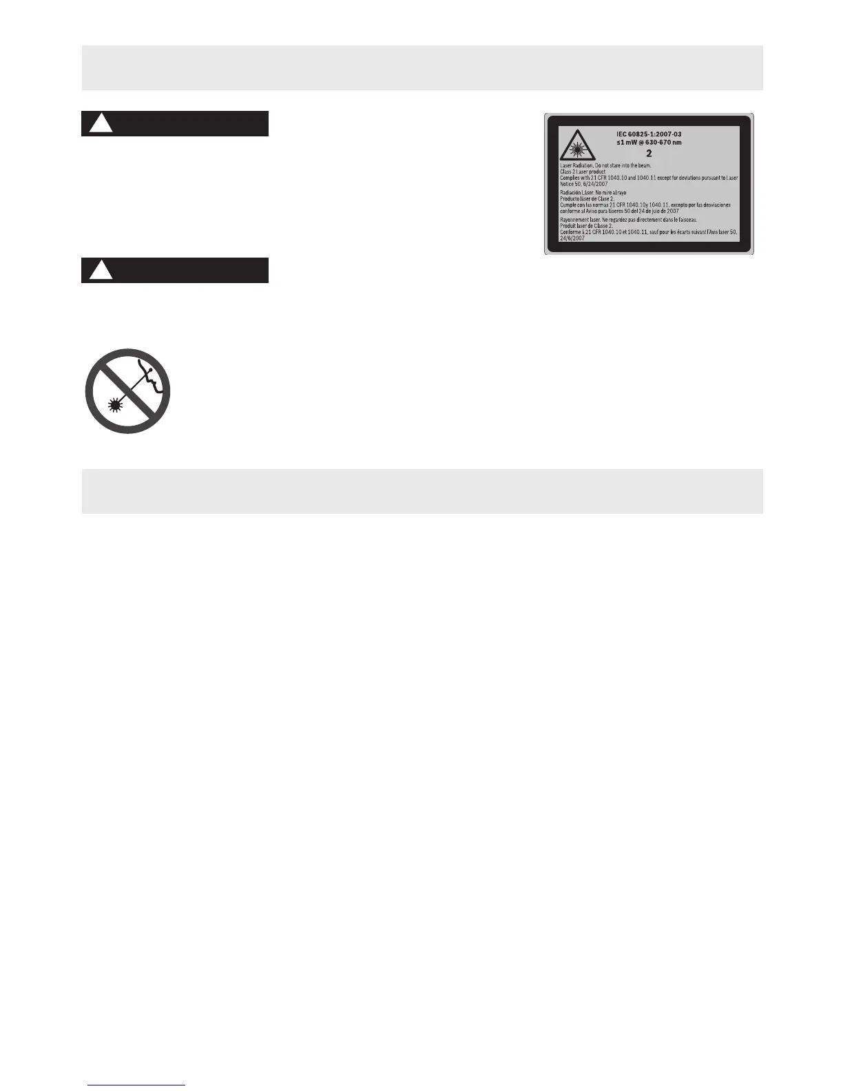 même. Cet instrument produit des rayonnements laser de classe 2 et