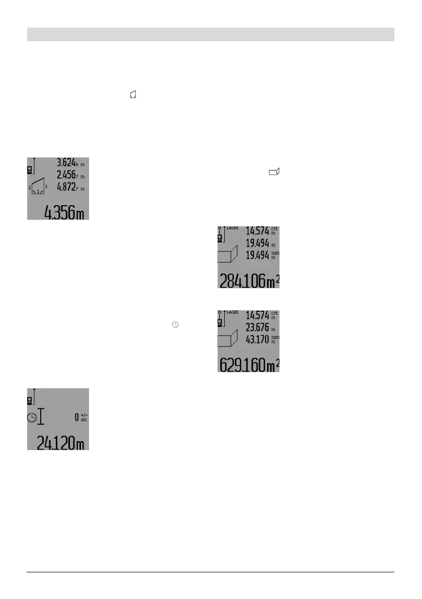 Za mjerenja površine zida, tipku za promjenu