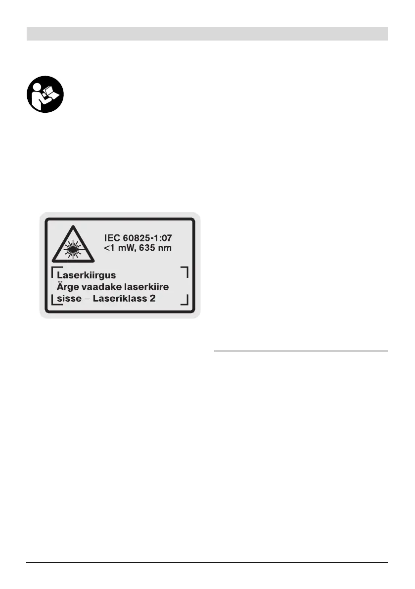IEC 60825-1 kohasele laseri klassile 2 vasta-