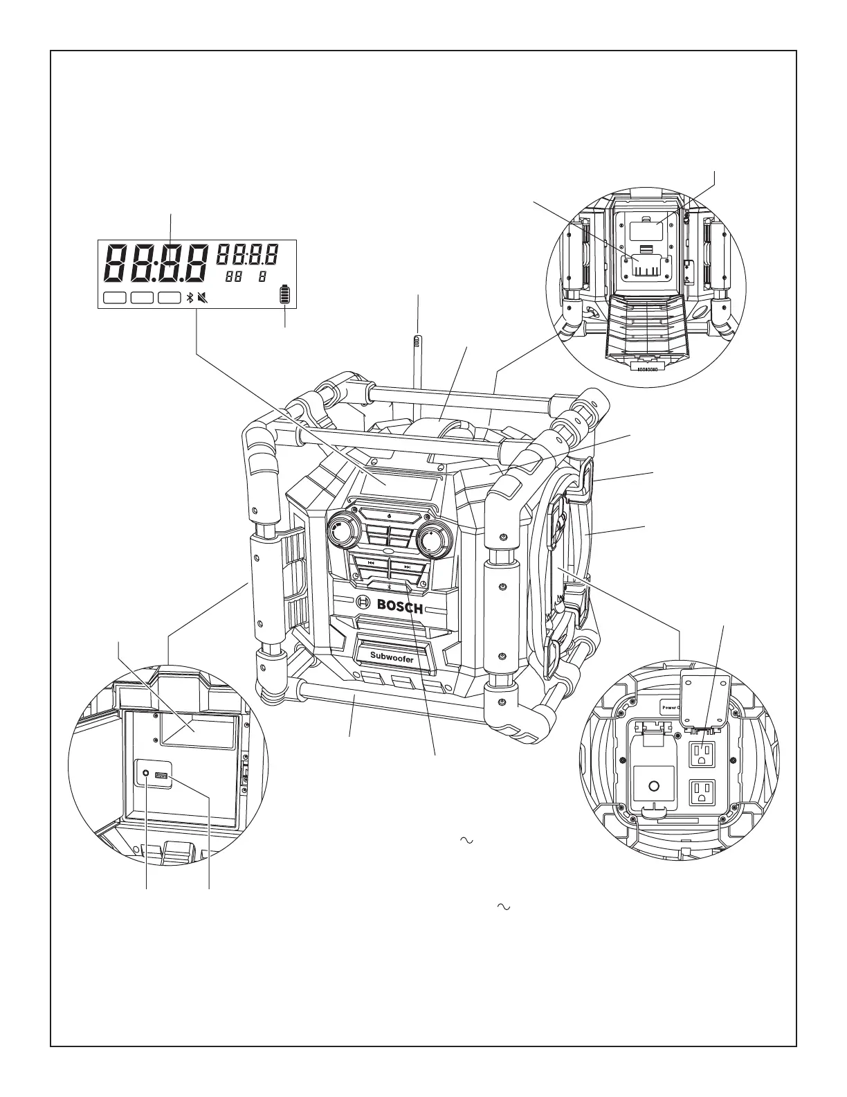 Estéreo para el sitio de construcción con tomacorriente de 4 conectores