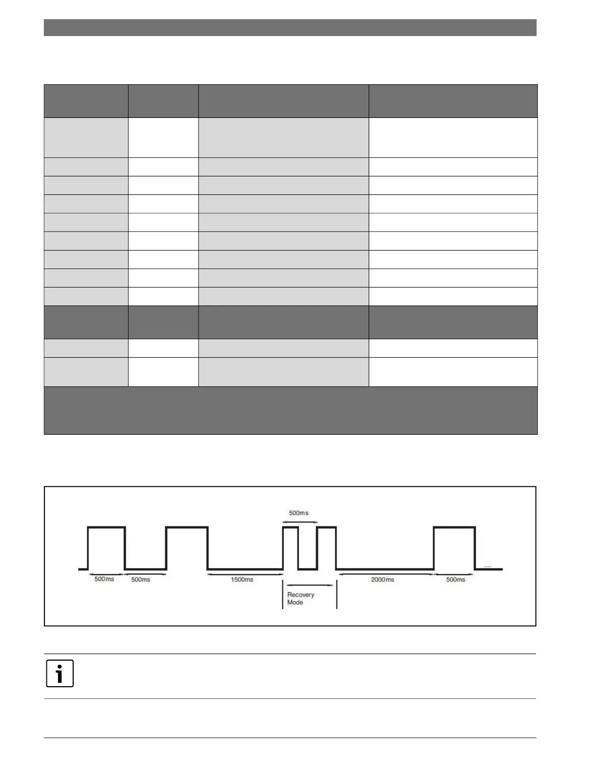 During recovery from an alarm condition, the red LED will flash at twice the normal flashing frequency between