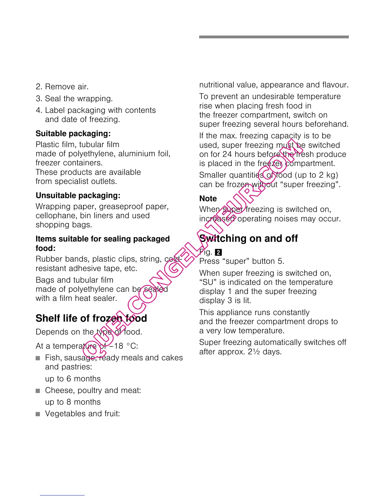 used, super freezing must be switched