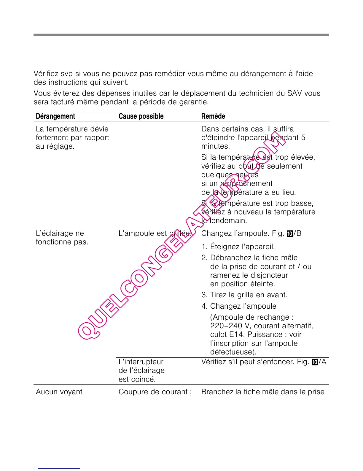L’ampoule est grillée. Changez l’ampoule. Fig. */B