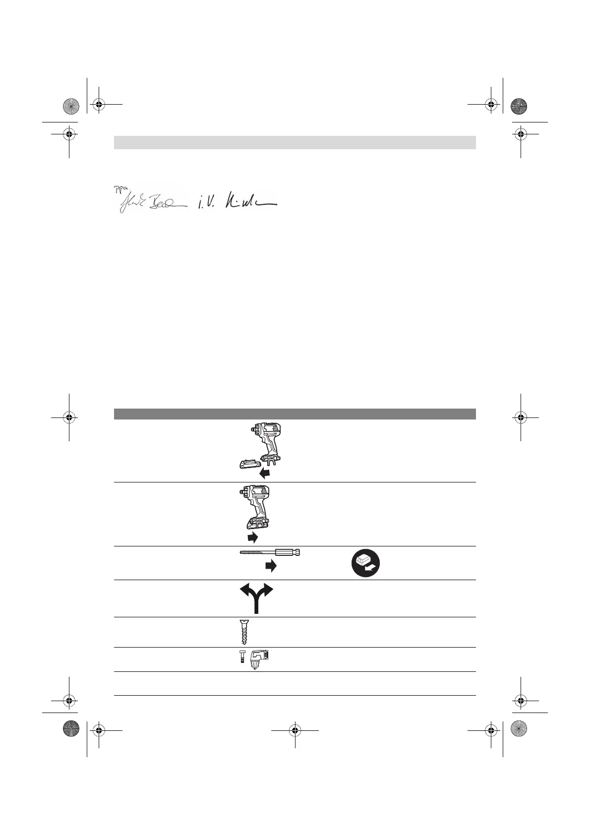 De volgende tabel toont de handelingsdoelen voor montage en gebruik van het elektrische gereedschap. De aanwijzingen van de