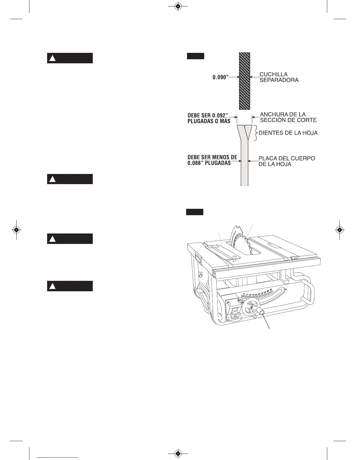 debe ser más ancha que 0.092 pulgadas. Las hojas de sierra