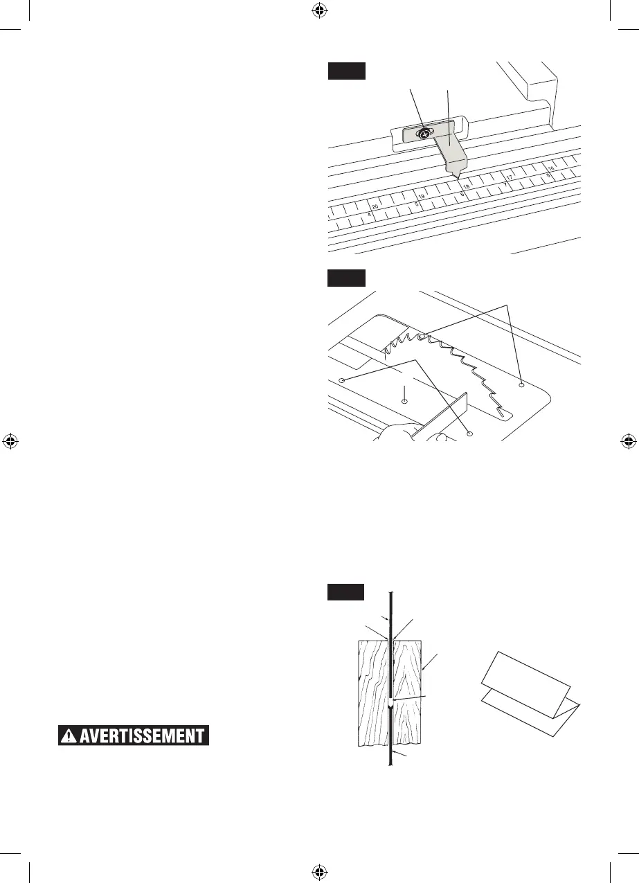 de la table, desserrez la vis de réglage de l’indicateur 1, ré-